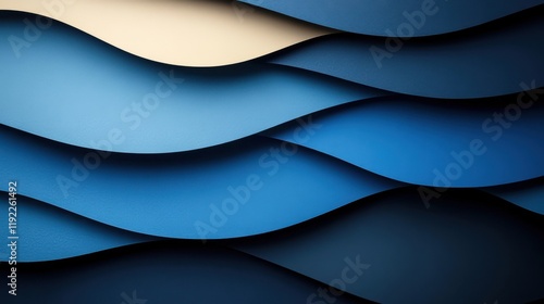 Abstract minimalist wallpaper with abstract geometric forms on blue background. Ideal for modern design and banner templates with copy space in the center for text.