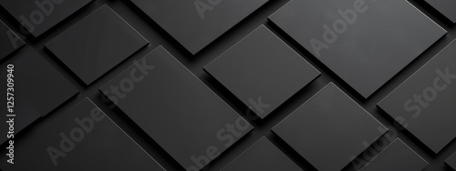 Abstract minimalist wallpaper with clean squares and rectangles on black background. Banner template with white center text area. Ideal for modern designs.