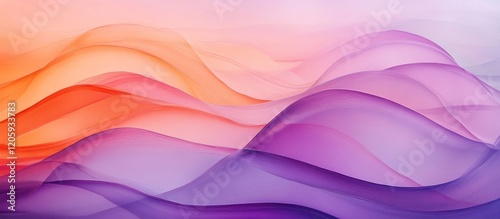 Abstract modern backdrop with flowing layers of curving lines in orange pink purple hues