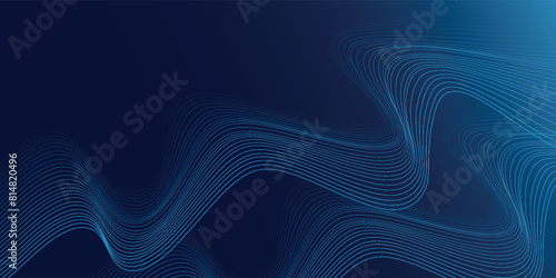 Abstract modern blue horizontal background with shining wavy lines