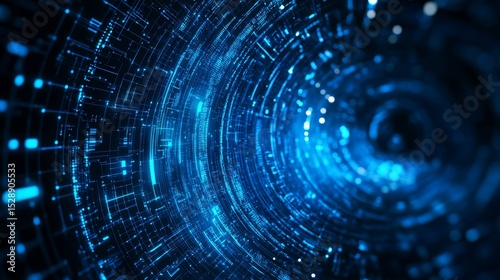 Abstract modern blue technology background with digital data flow, internet network connections, futuristic computer interface elements, and high-tech communication design