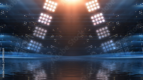 Abstract modern dark background. Dark empty scene with neon rays and spotlights. Night abstract background light. Neon light, reflection.
