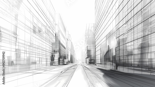 abstract modern urban landscape line drawin.3D illustration Imagination architecture building construction perspective design.