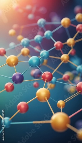 Abstract molecular network connection illustrates 3D science and technology with atoms and DNA structures