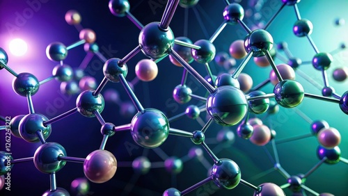 Abstract Molecular Structure A Close-Up Visualization of Interconnected Spheres and Bonds Representing Atomic Connections in a Complex Network