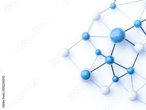 Abstract molecular structure with blue and white nodes on a clean background