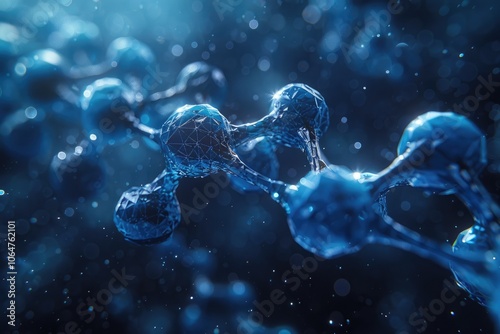 Abstract Molecular Structure with Blue Polygonal Spheres and Glowing Particles