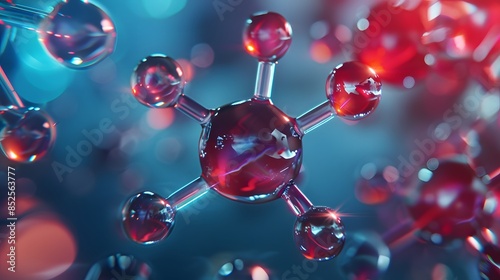 Abstract molecule design with atoms. Technological advances in pharmaceutical research, close-up on high-tech molecule analysis.