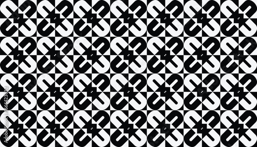Abstract monochrome pattern with repeating flower-inspired geometric forms, creating a striking visual effect.