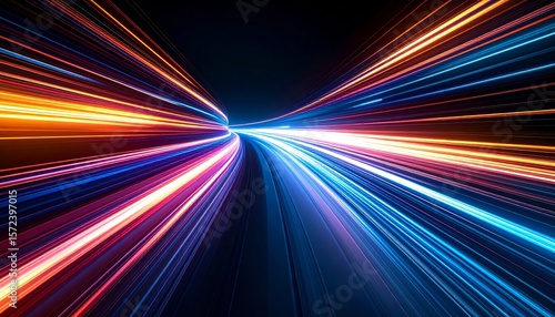 Abstract motion background of colorful speed blurred lines creating a dynamic night road or space pattern with glowing energy