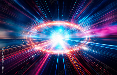 Abstract motion blur of streaks of light radiating outwards from a central point.