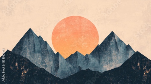 Abstract Mountain Landscape with Sun Illustration for Nature Decor