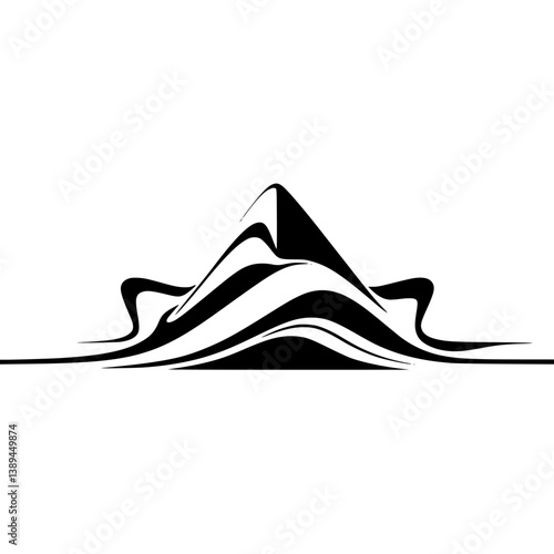 Abstract Mountain Silhouette, Fluid Design, Black and White Vector
