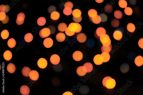 Abstract multicolor bokeh texture on black background. Defocused sparkles.