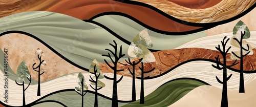 Abstract Nature Wall Art Print with Trees in Earthy Tones
