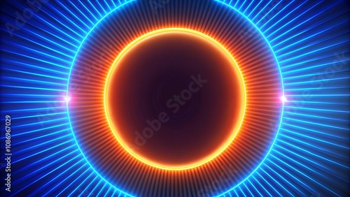 Abstract Neon Circle Background with Glowing Lines and Radial Pattern