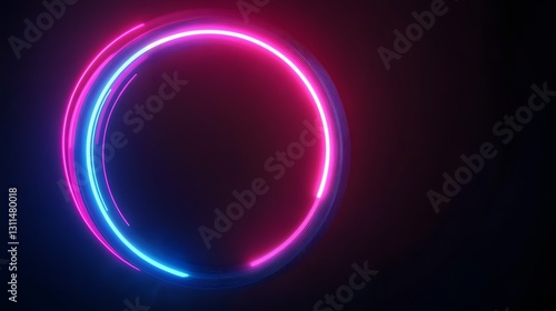 Abstract Neon Circle Glowing Brightly In Dark Background