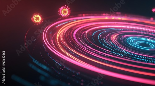 Abstract Neon Circles Background, Futuristic Tech Design