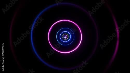 Abstract Neon Circles Background with Glowing Colors Creating a Hypnotic Tunnel Effect and Modern Design Element