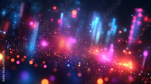 Abstract Neon Cityscape Illuminated With Vivid Lights