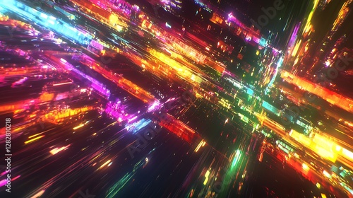 Abstract Neon Cityscape Light Trails Dynamic Energy