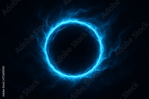 Abstract neon energy ring with blue electric aura symbolizing futuristic portal sci fi technology and virtual light