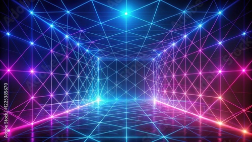 Abstract Neon Geometric Room with Glowing Lines and Bright Lights