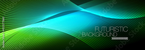 Abstract neon glowing light in the dark with waves. Shiny magic energy and motion concept, vector abstract wallpaper background