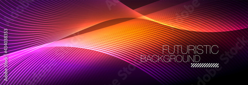 Abstract neon glowing light in the dark with waves. Shiny magic energy and motion concept, vector abstract wallpaper background