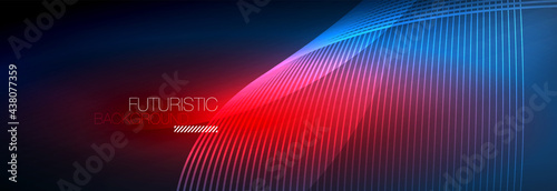 Abstract neon glowing light in the dark with waves. Shiny magic energy and motion concept, vector abstract wallpaper background