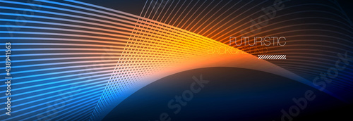 Abstract neon glowing light in the dark with waves. Shiny magic energy and motion concept, vector abstract wallpaper background