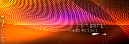 Abstract neon glowing light in the dark with waves. Shiny magic energy and motion concept, vector abstract wallpaper background