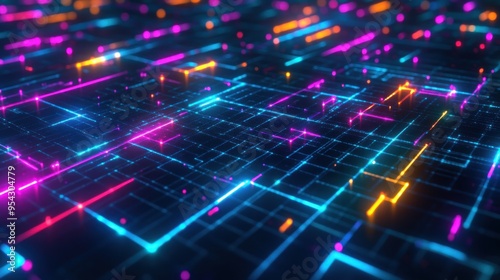 Abstract Neon Grid with Vibrant Lights