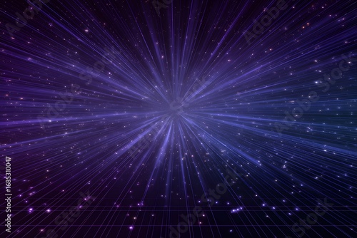 Abstract neon light background with blue and purple glowing lines on a black, gradient background