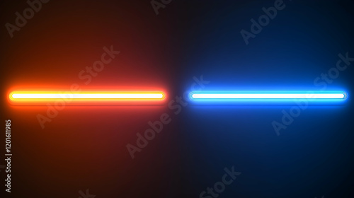 Abstract neon light bars, orange and blue glow, dark background, futuristic design, ideal for tech or gaming backgrounds