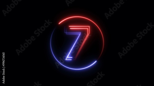 Abstract neon light countdown 7 number illustration background 4K.