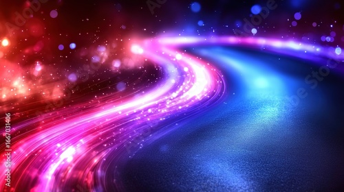 Abstract Neon Light Trail Background with Dynamic Curves and Glowing Particles