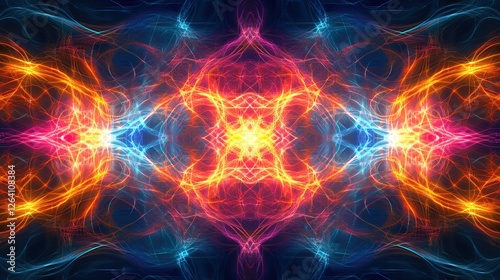 Abstract neon light trails forming a dynamic, futuristic pattern