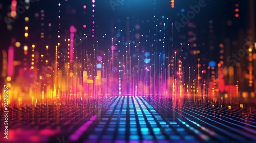 Abstract Neon Lights and Grid Pattern