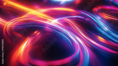 Abstract Neon Lights Swirling Colorful Background