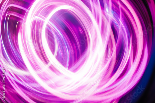 Abstract neon swirl texture, bold pink and purple light trails creating a circular vortex, futuristic and eye-catching