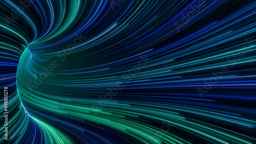 Abstract Neon Tunnel with Blue, Purple and Green Curves. 3D Render.