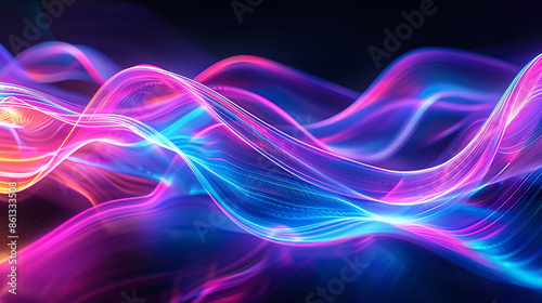 Abstract neon waves intertwining and glowing in a hypnotic dance of colors and light.