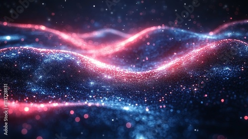 Abstract Neon Waves with Glowing Pink and Blue Particles