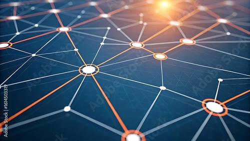 Abstract Network Connection Background with Nodes and Lines on Dark Blue