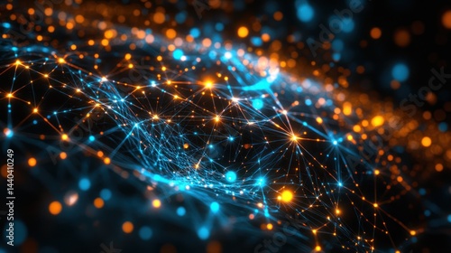 Abstract Network Connection: Digital Galaxy of Blue and Orange Nodes