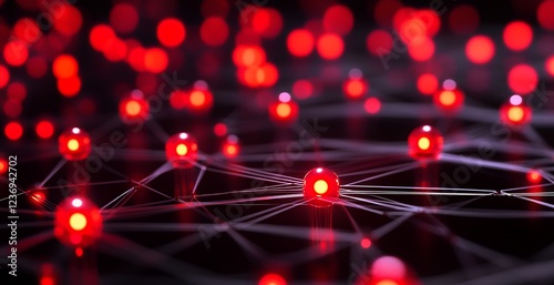 Abstract Network Connection Red Nodes Glowing Lines Digital Technology Concept