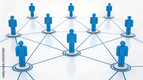Abstract network connection with blue human icons on white