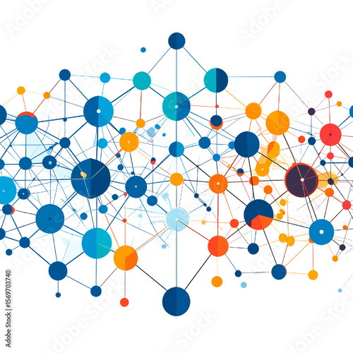 Abstract Network Connection with Blue Orange and Red Dots on White Background for Data Communication and Global Digital Structure