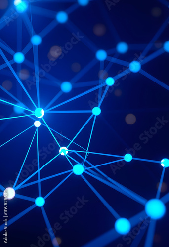 Abstract network connections with glowing dots and lines on a dark blue background, concept of digital communication. 3D Rendering, with white tones